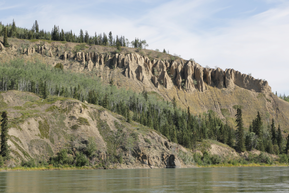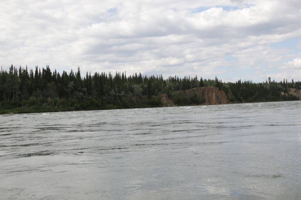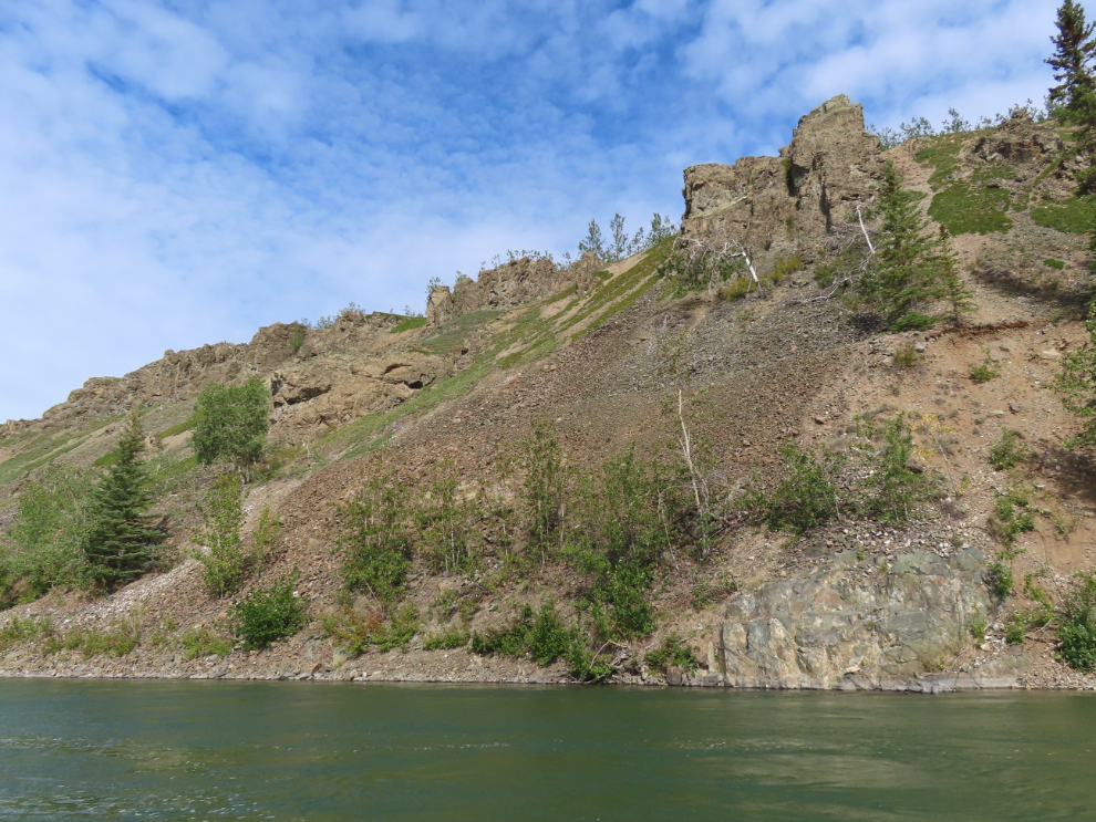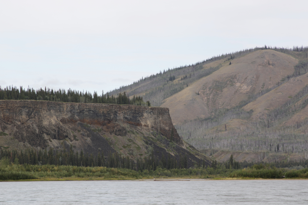 The start of many miles of basalt walls, just upriver from the mouth of the Pelly River at 2:43.