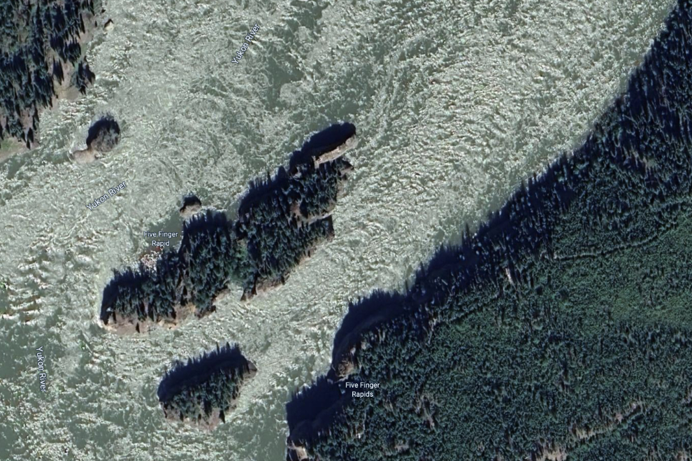 About five miles below Five Fingers, Rink Rapids stretches across most of the river, but a narrow path close to the right shore stays pretty calm.