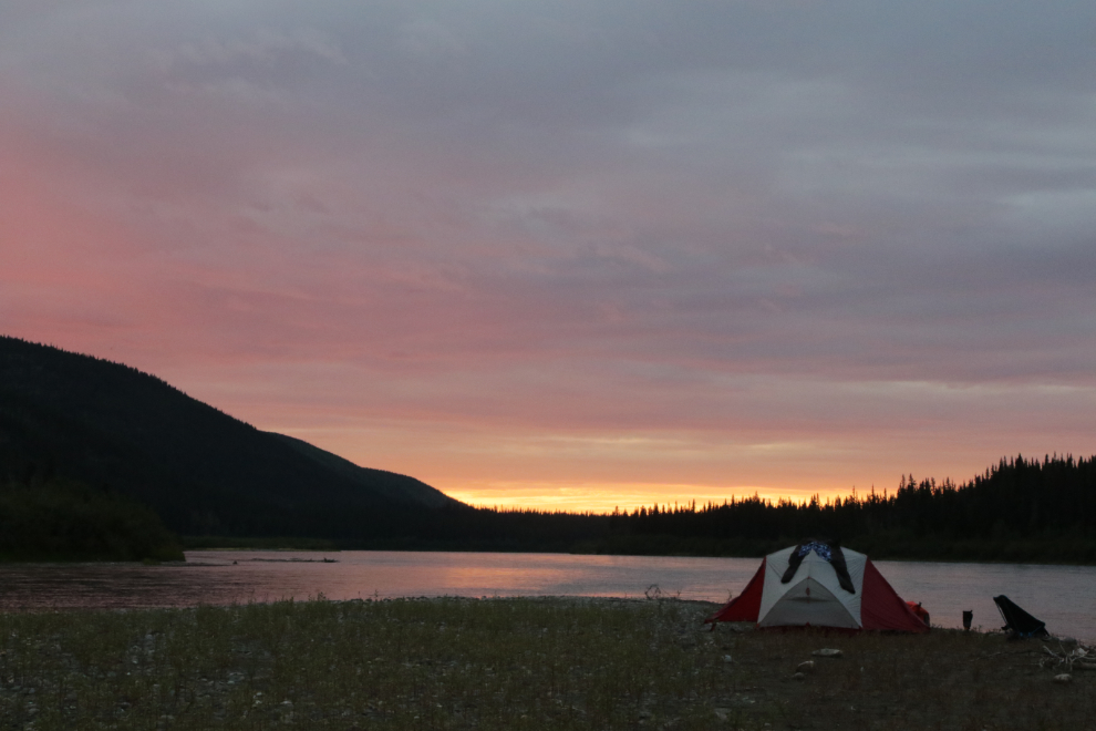 The light had gone flat in the early afternoon, and I finally said I was tired and not having fun and wanted to quit. We found a good island to spend the night on, below Black Creek. Our total mileage for the day was only 30 miles, and we were now 217 miles from Whitehorse.