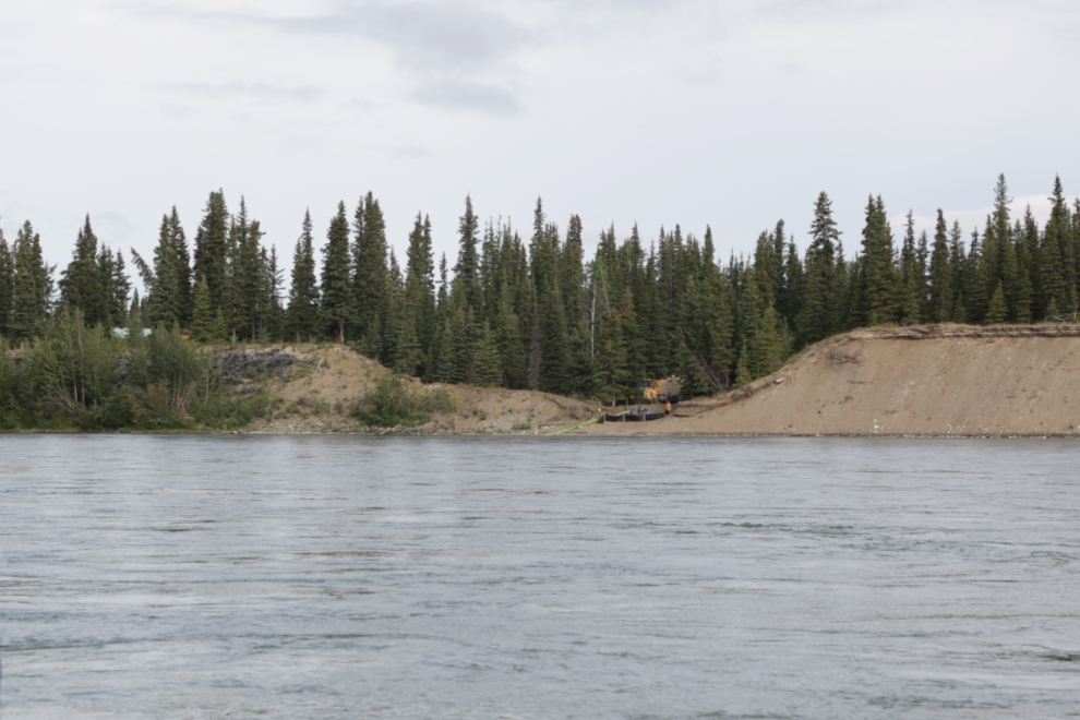 Sunday, August 17th, Day 7 of the trip. The first photo was shot at 10:50, a little over an hour after we got back on the river – the light was flat and the country not inspiring. From the highway, you would never know that Minto exists, but from the river there is a lot going on. I expect that water trucks for nearby highway construction were being filled here.